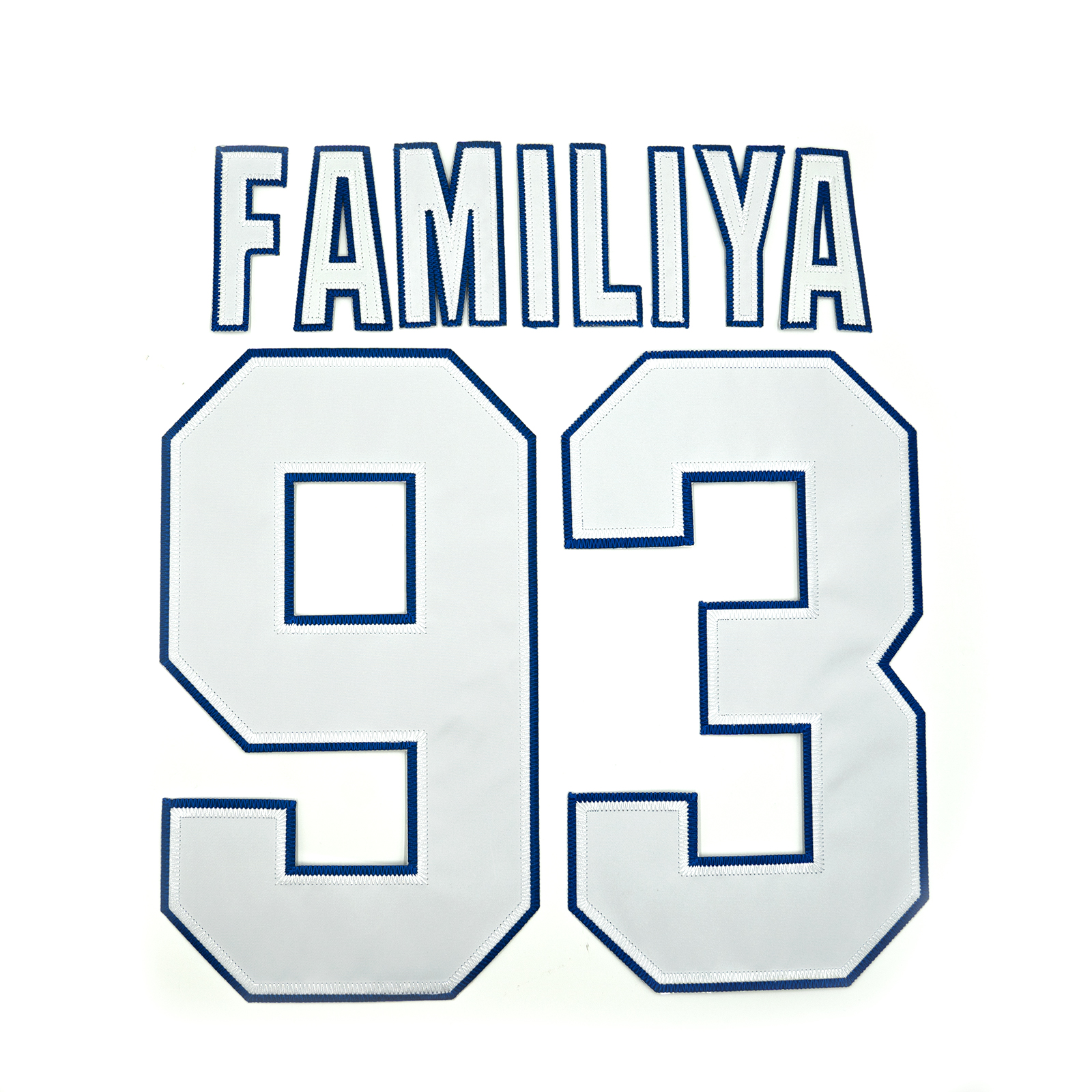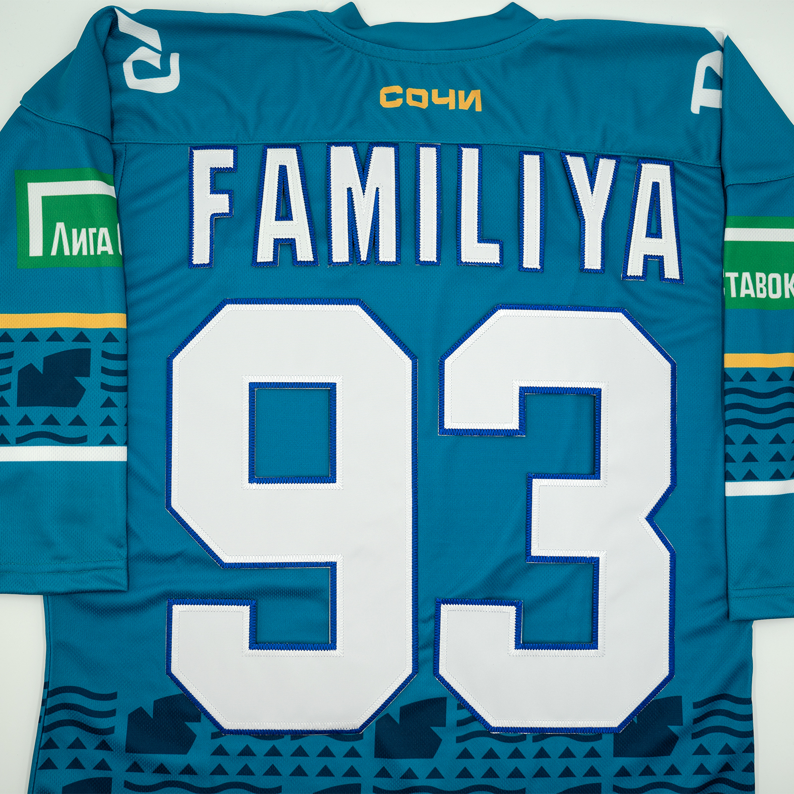 Нанесение номера и фамилии на спину производится объемными, вышитыми буквами, как на профессиональных хоккейных свитерах.